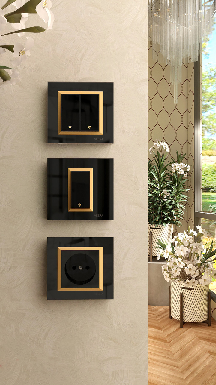 کلید و پریز توکار ویرا مدل ویراپرو مشکی زه طلایی