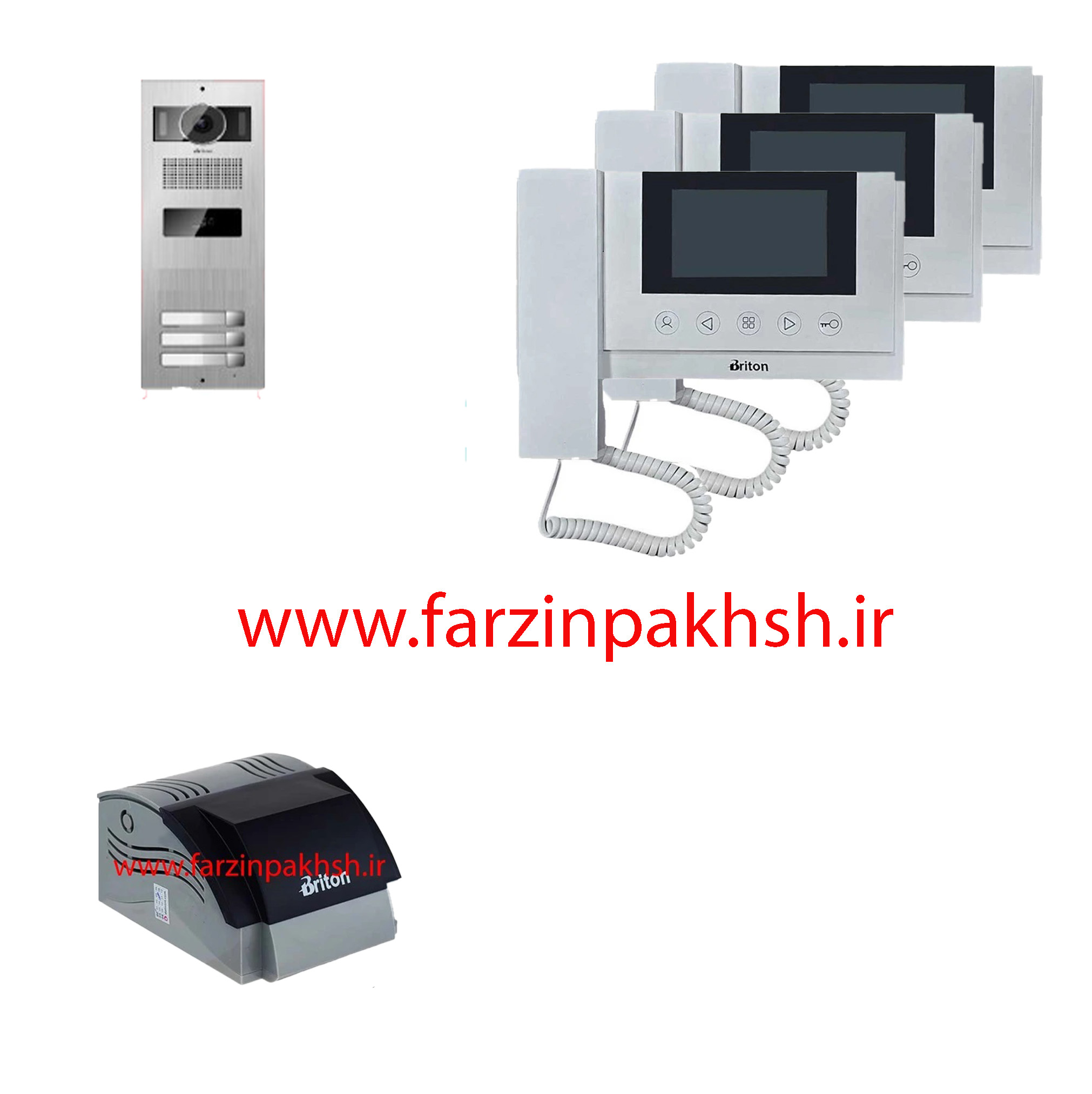 گوشی دربازکن تصویری برایتون مدل 4310: دارای صفحه نمایش 4.3 اینچی بوده و بدون حافظه است و تنها قابلیت اتصال به یک پنل دمدری را دارد.